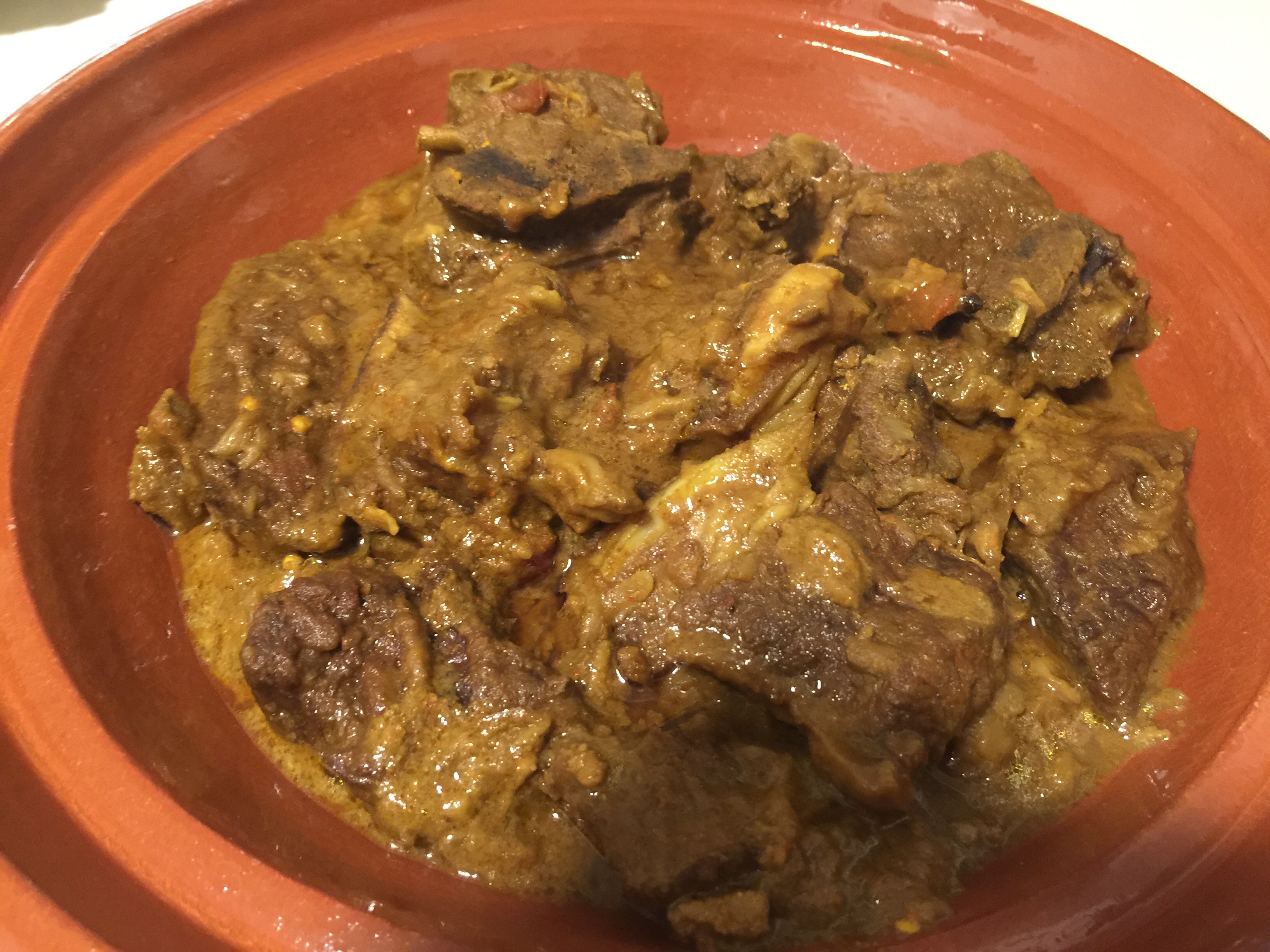 In a big pot put the meat and all the other ingredients listed above . Take a big spoon and give it all a good mix . Then turn the heat on medium high and place the pot on top and let the mixture heat up . You want the meat to change color , and sear on each side . Once it has seared place the cover on the pot and let cook for half an hour under medium heat . You will see a gravy start to accumulate . After half an hour , add two cups of hot water and cover and let cook for at least an hour and a half or until the beef is cooked through and you have a nice thick gravy. Serve either wirh bread or on a bed of white rice .
