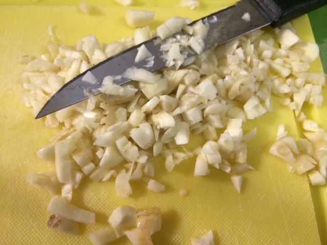 Then add the garlic and sautee for 2 minutes. Do not burn.