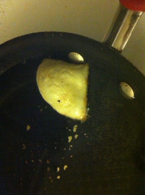 You can fry them as is, or I like to either halve or quarter them and then fry them. Once you put them in the oil, they should immediately rise to the surface and start puffing up. Turn it , and let the other side brown. Take out, and let oil drain and then serve hot or warm.