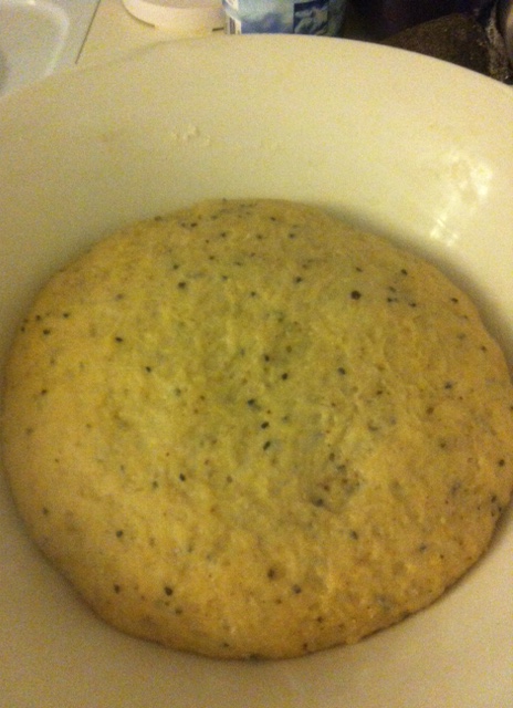 Mix all the dry ingredients–flour, sugar, ground cardamon and cloves, yeast , baking powder and black seed. Then add the oil and rub it in well. Then the warm water [tap water works to make the dough. Remember to pour the water gradually, than pour it all at once. Pour and knead, until the dough comes together. You won’t be needing much water. Then place the dough in a bowl and cover with plastic wrap and let rise. Place in a warm spot–I put mine mine out on my balcony since it’s Summer here. You can also place overnight in your kitchen. The dough will double in size. If you want to go ahead and make them, make into small balls [the size that of when you bring forefinger and thumb together] or you can divide into larger balls and then cut them out with a pizza cutter/knife/or cookie cutter.
